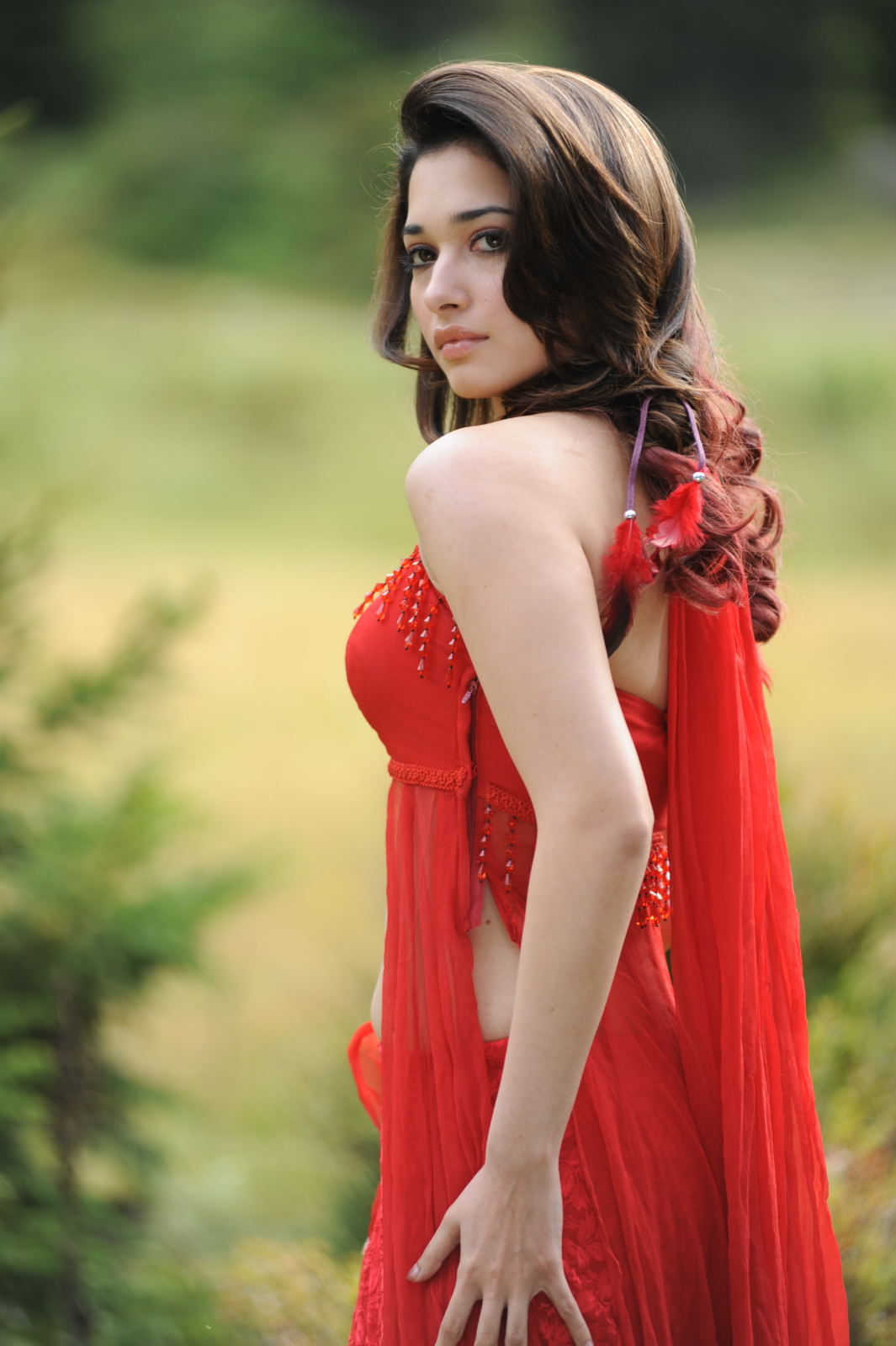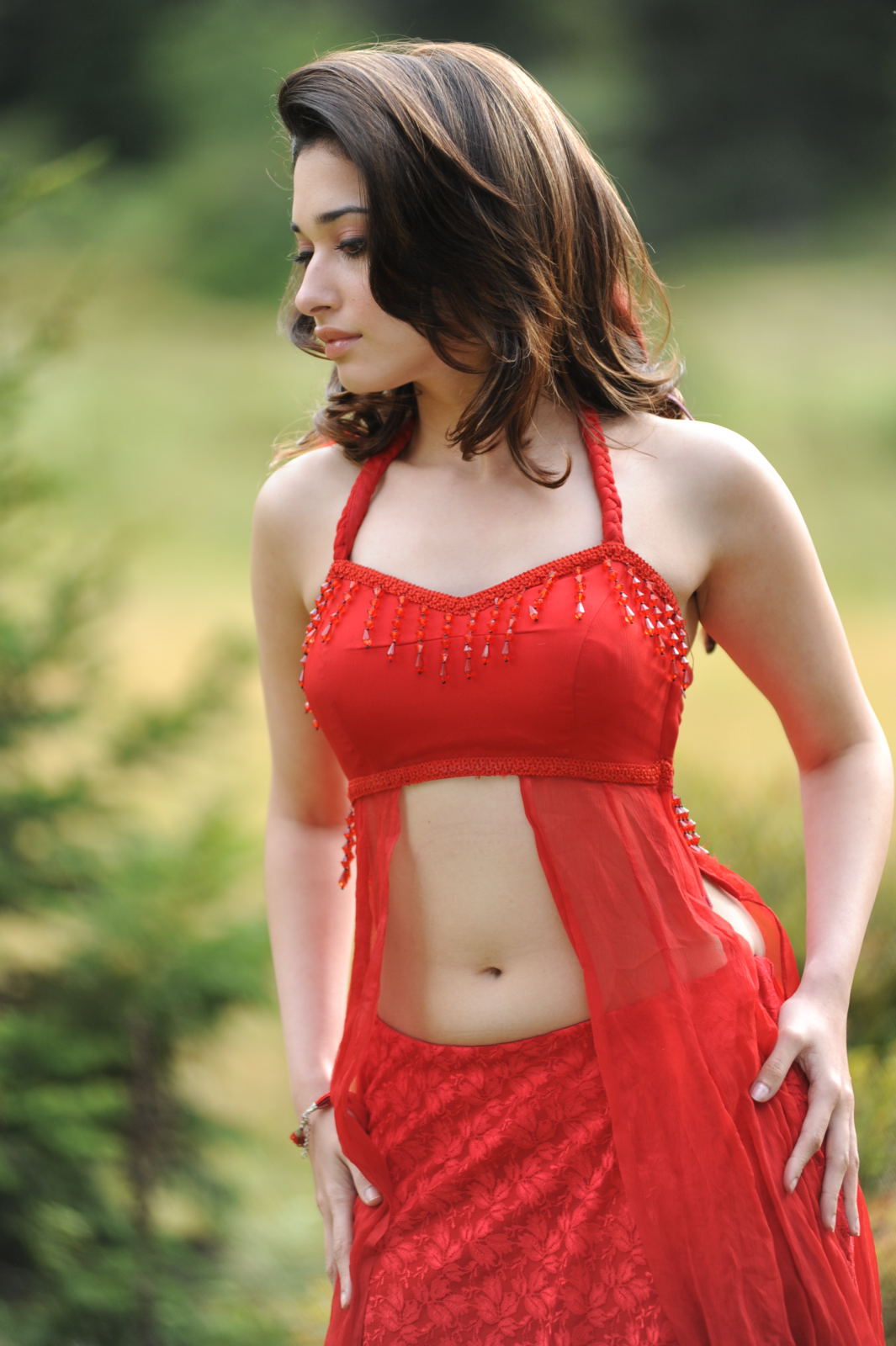 Tamanna Hot Photos in Red dress from Telugu Movie